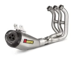The Racing Line is identical to Akrapovic’s top range Evolution Line exhaust systems, with the major difference being the material that is used for the headers and mid-pipes. The headers and mid-pipes of the Evolution Line are constructed exclusively of titanium while the Racing Line uses stainless steel.