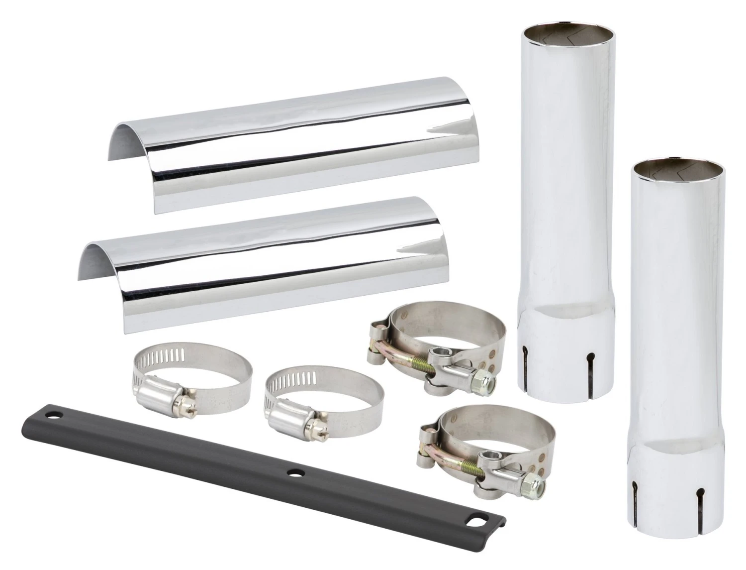 Everything you need to extend your factory or aftermarket exhaust to the proper length for use with Down-N-Out Saddlebags and rear fender extensions.