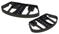 Based off the aesthetic of the original MX-style Burly pegs, they took that moto style and came up with MX-style passenger floorboards for H-D Touring models. They are made of steel with just the right amount of serration to keep your feet planted. They are also TIG welded for strength and then powder-coated satin black to blend nicely with your bike.