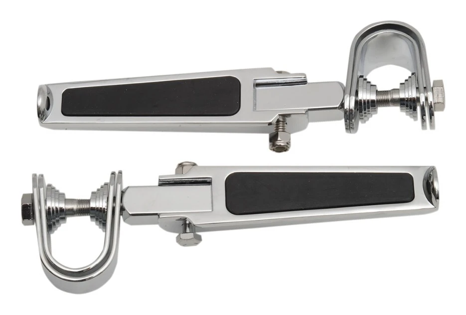 Easily clamp these highway pegs to your 1″ or 1 1/4″ diameter crash bars or frame for a great, additional foot position.