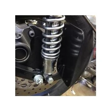 This shock-mount license plate bracket bolts to the lower 1/2″ shock bolt allowing an easy relocation of your license plate where a tail light is not required.
