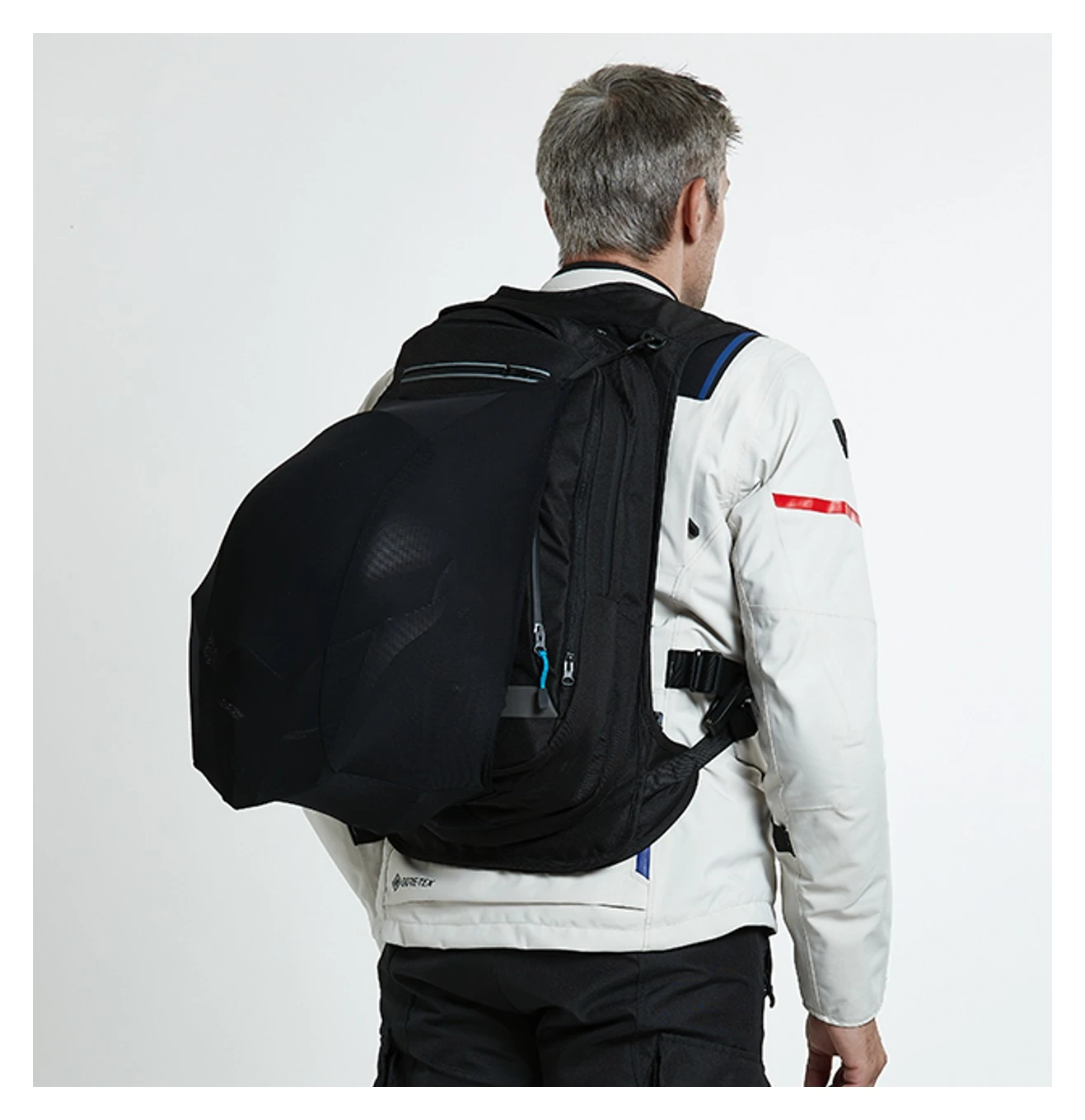 The Helite H-Moov is also a fully functional backpack. Outside and inside pockets secure valuables while an included rain cover keeps them dry. The attached helmet bag is an added bonus keeping gear together.