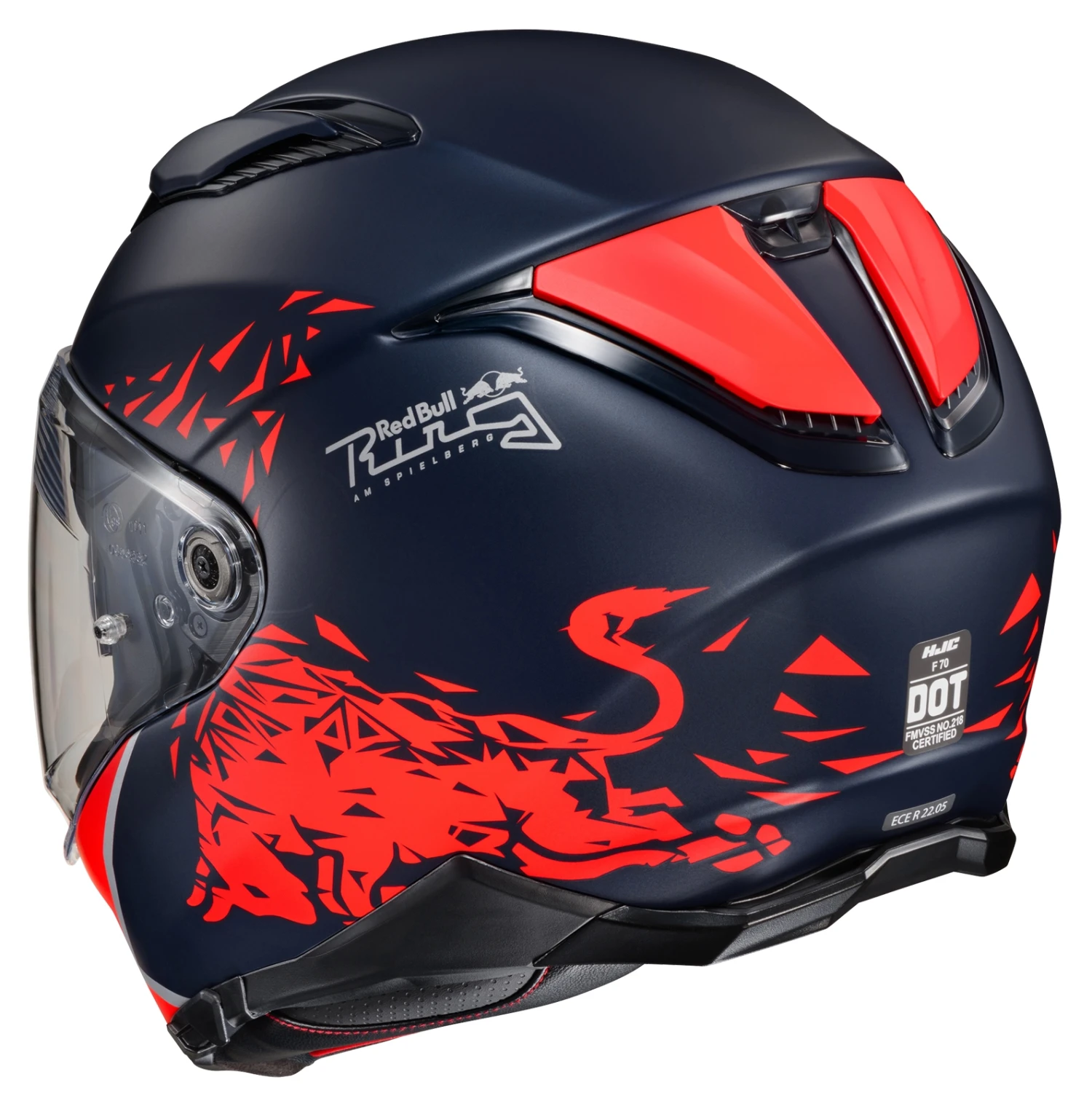 The HJC F70 Red Bull Spielberg Helmet features an aerodynamic shell, bold Red Bull graphics and all the features you need to keep you at the head of the pack. The advanced fiberglass composite shell is lightweight and designed using CAD technology for a superior fit. You’ll be cool and comfortable in the HJC F70 Helmet thanks to HJC’s Advanced Channeling Ventilation System (ACS) that moves air through the helmet and pulls moisture out and anti-bacterial SuperCool fabric interior lining wicks sweat away and dries quickly.