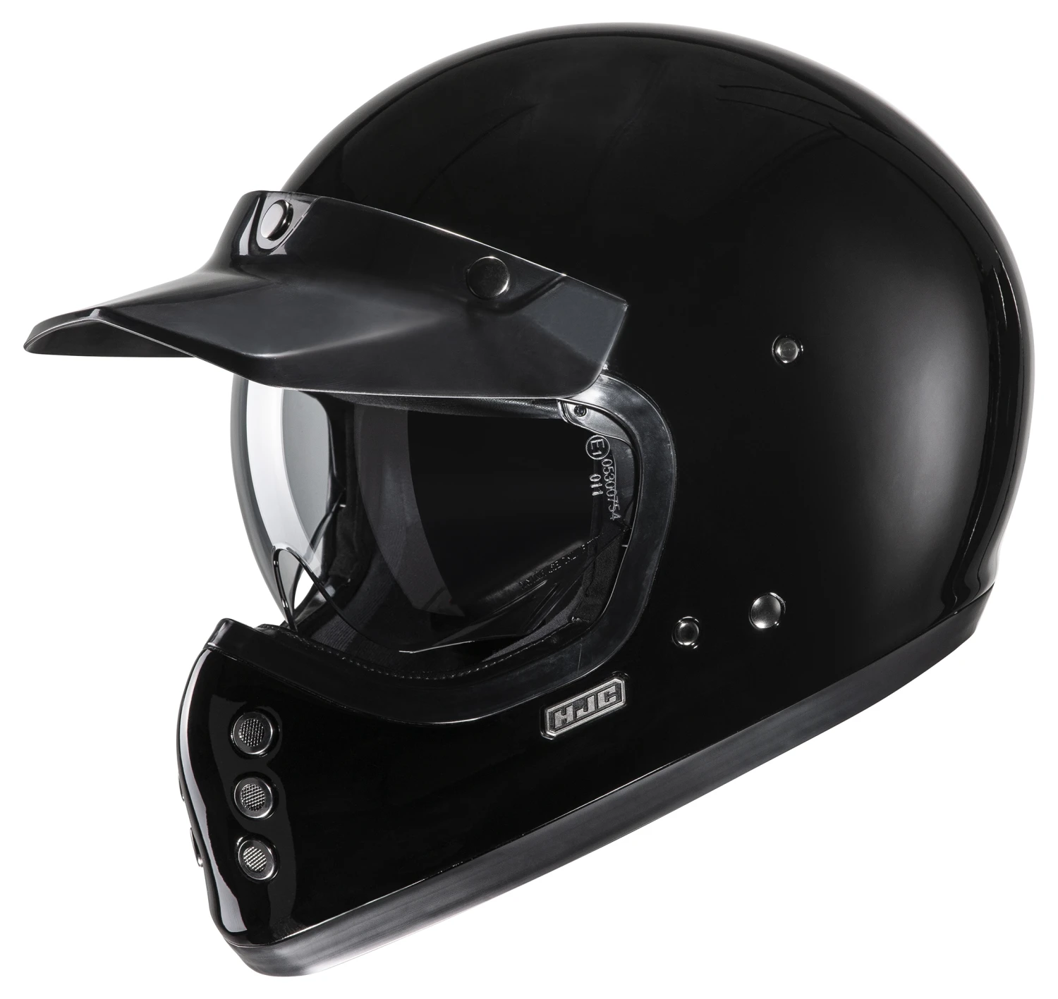 The HJC V60 Helmets are composed of an advanced fiberglass shell with a classic helmet design. This goggle and eyeglass friendly helmet also has an internal sun visor to protect riders eyes. A removable and washable crown and cheek pads allow riders to keep the interior of their helmet fresh and clean. Built in speaker pockets allow for the possibility of adding a communication device. Removable peak visor included.