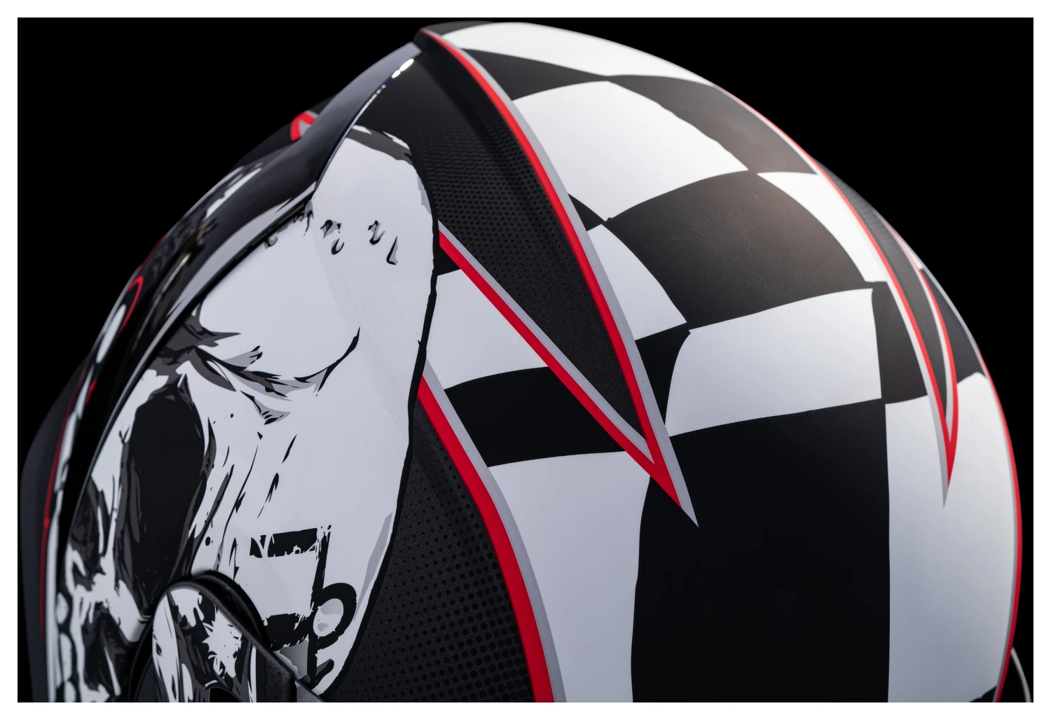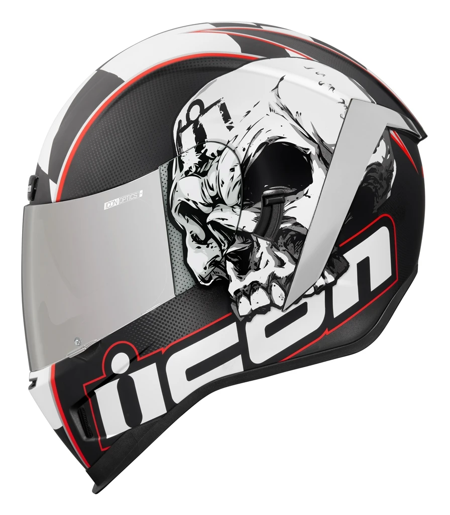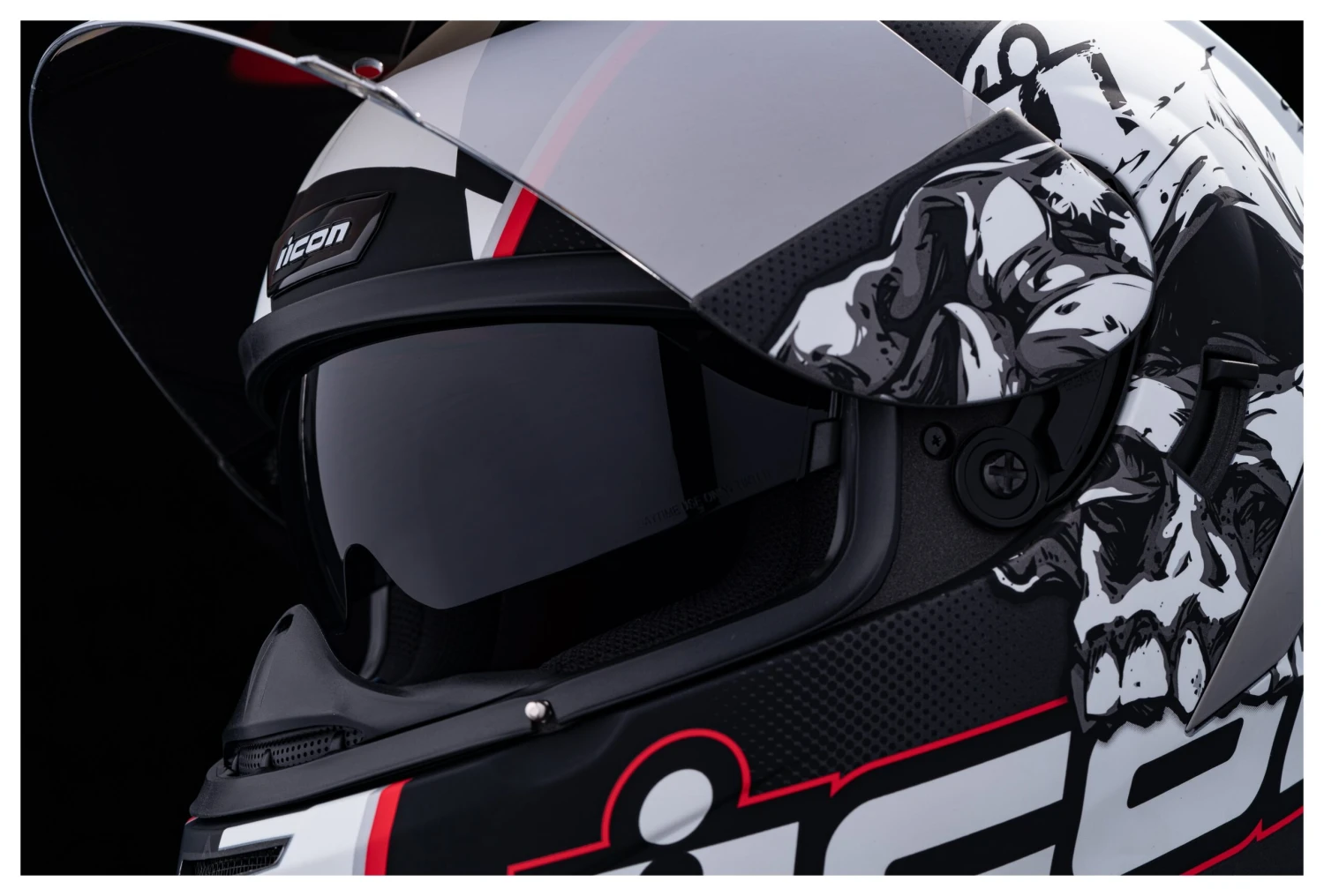 The Icon Airform Helmet is built for riders who need the accouterments of a touring helmet with the performance of a track helmet. Its streamlined and race inspired shell is injection molded polycarbonate for strength. The fog-free Icon Optics Face Shield increases peripheral vision and produces an unmatched distortion-free line of sight so you can keep your eyes on the prize. An internal sun visor drops down to shield your eyes at the flip of a switch.