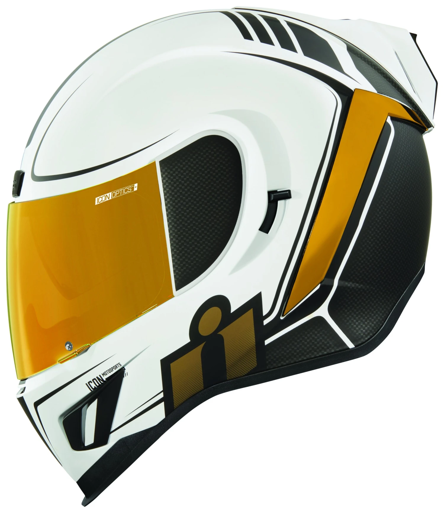The Icon Airform Helmet is built for riders who need the accouterments of a touring helmet with the performance of a track helmet. Its streamlined and race inspired shell is injection molded polycarbonate for strength. The fog-free Icon Optics Face Shield increases peripheral vision and produces an unmatched distortion-free line of sight so you can keep your eyes on the prize. An internal sun visor drops down to shield your eyes at the flip of a switch.