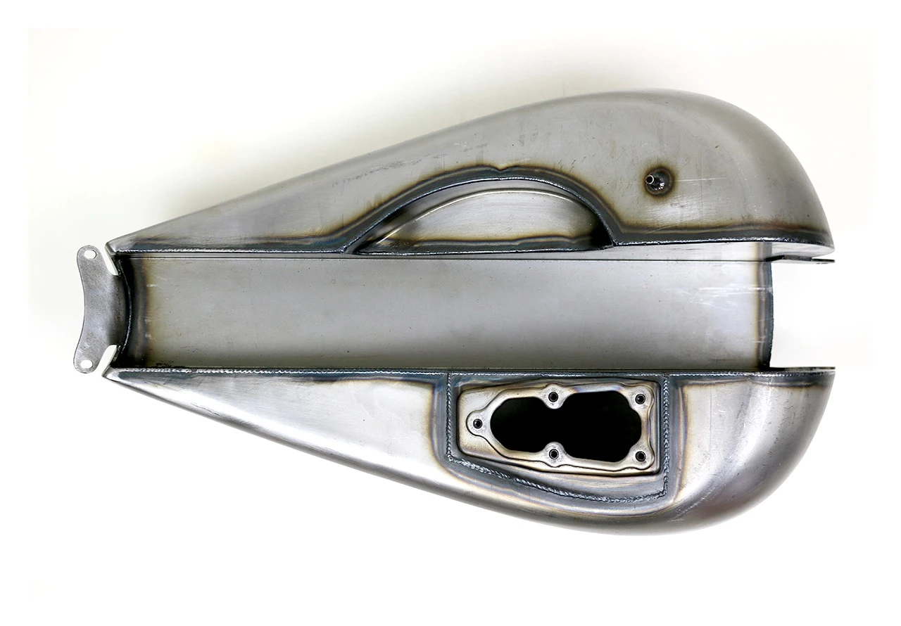 If you want to take the look of your new Softail to the next level, check out this long and low stretched tank from Kodlin USA! This custom tank will accept your OEM fuel pump and includes a pop-up cap, but arrives unpainted and unsealed. Unlike many custom tanks, this one has a capacity of 3.5 gallons so your custom ride will still be highway capable.