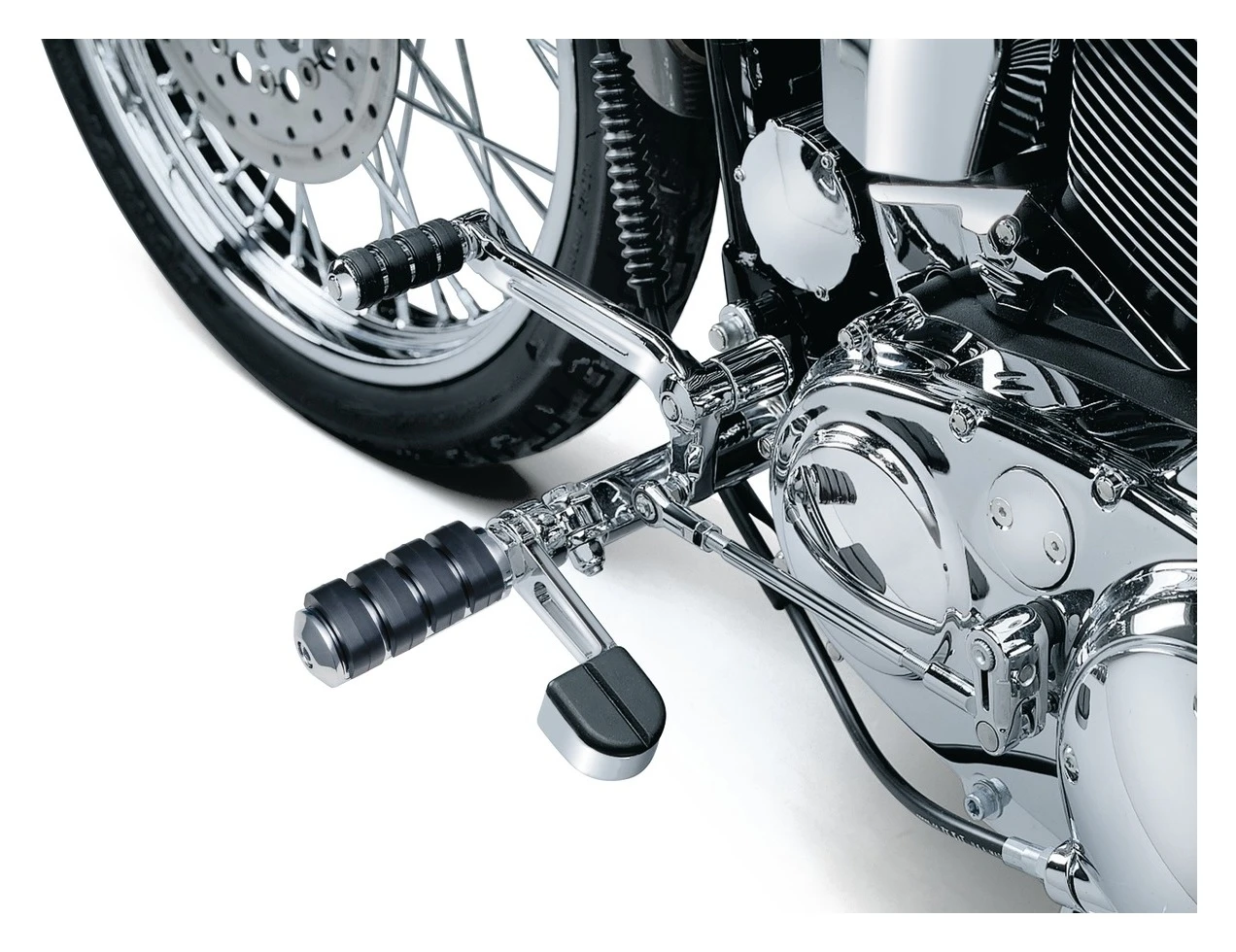 Give your heels a rest with the Kuryakyn Stirrups that adds the comfort of floorboards on long rides. Features chrome bodies and rubber pad inserts that isolate the foot from vibration. The ISO Stirrups come with extended male-mounts to lock into your favorite Kuryakyn footpegs.