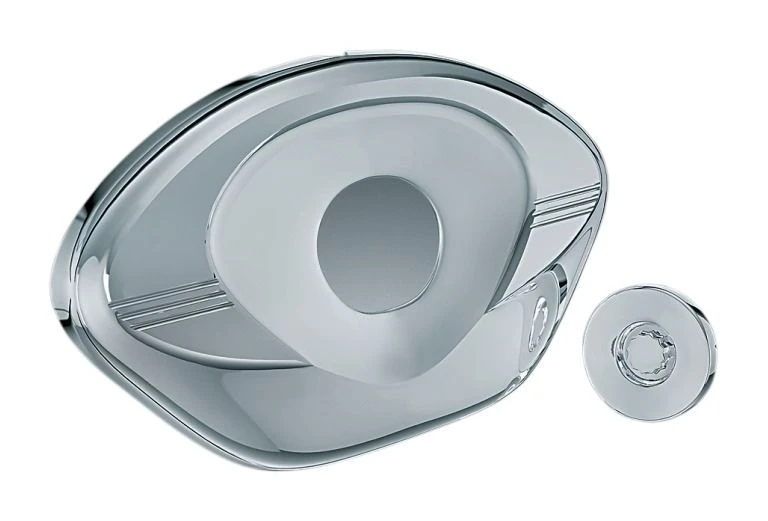 If your eyes hurt from looking at the ugly aluminum cam chain cover but you don’t want the expense and hassle of having the cover chromed, you’re in luck. This chrome set covers the entire timing chain cover in minutes. The strong adhesive is specially designed for high temperatures. A chrome version of the stock screw-in cap is included.