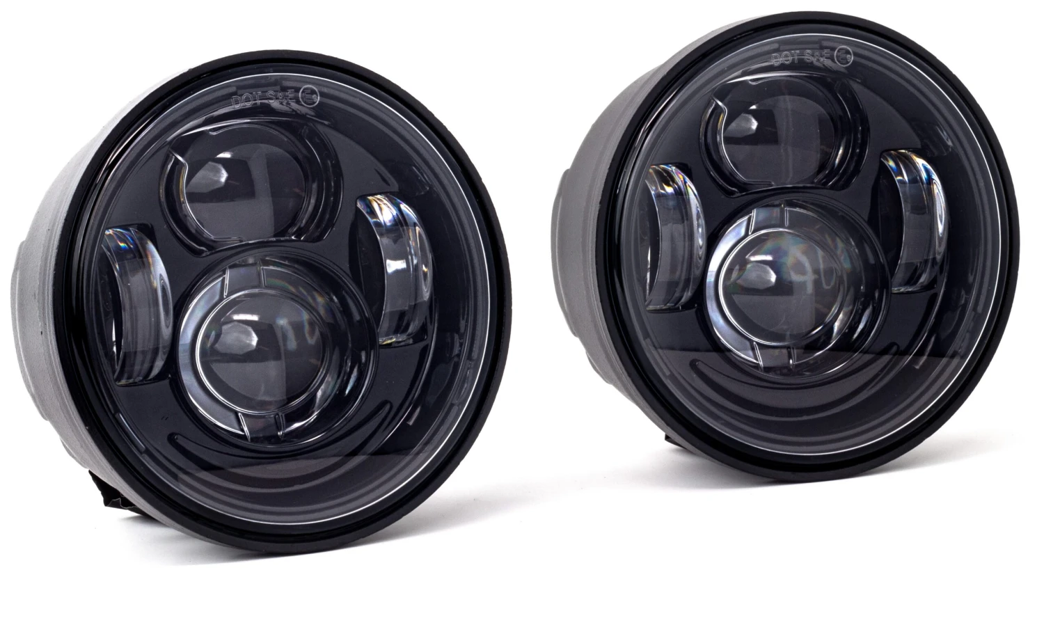 Add some light and keep the sinister look with this black headlight kit for your Fat Bob.