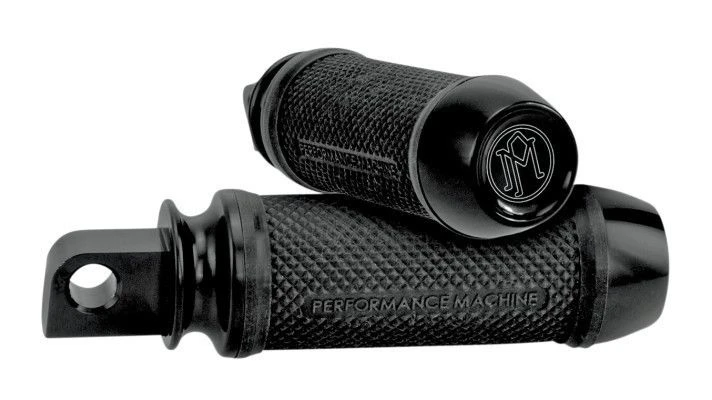 These classy foot pegs are CNC-machined from billet aluminum and are branded with the Performance Machine logo. They are manufactured with durable, knurled rubber that is built for comfort. Available in a variety of styles and finishes with the matching Performance Machine Shift Peg sold separately.