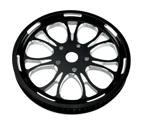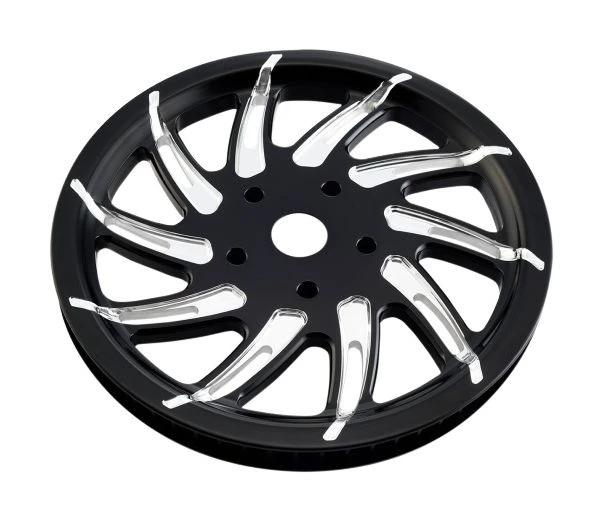 The precision-shaped tooth profile is designed to fit your Softail’s final-drive belt perfectly. It is constructed from CNC-machined aluminum with a chrome or contrast cut finish.