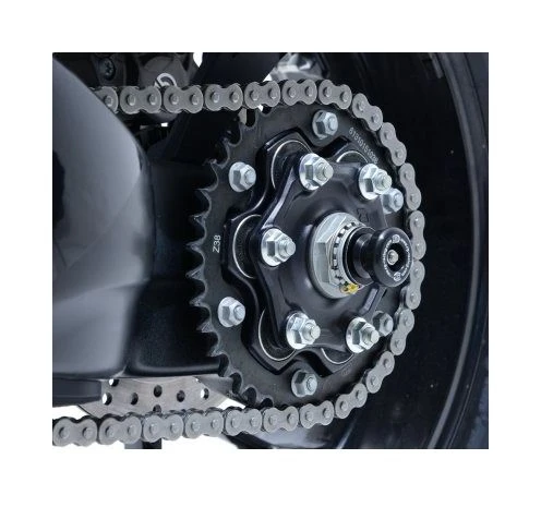 Note: Image for reference only. R&G Racing Rear Axle Sliders may vary slightly depending on your bike’s make and model.