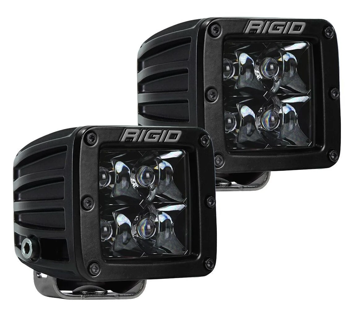 The Rigid D-Series LED Light Pods have always been the most versatile compact lighting package on the market. Available with a variety of mounting options and beam patterns, the D-Series PRO can be used in virtually any lighting application. The “Pro” in D-Series Pro stands for “professional”: greater light output, extended service life and durable construction. With a compact footprint measuring just 3″ x 3″ (see schematic for dimensions of flush mount versions), the D-Series Pro Lights are available in surface (standard) or flush mount with a variety of beam patterns. Constantly evolving LED technology now packs an even harder punch with up to 102 percent more raw lumens than past versions. D-Series Pro Lights feature bold “Rigid” branding and blacked-out circuit boards, an aluminum bezel and heat sink and UV-resistant powder coatings.