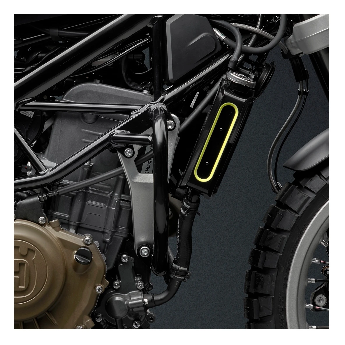 The Rizoma Engine Guards features steel tubing that has been shaped and finished to match the design of the Svartpilen 401.