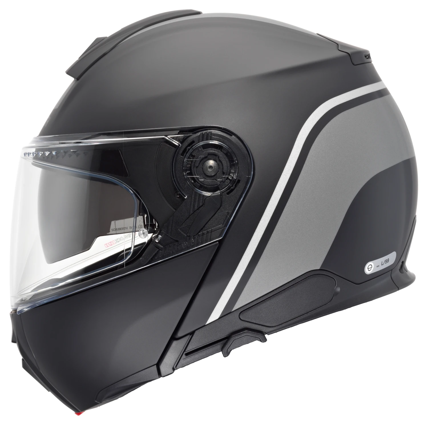The Schuberth C5 Route Helmet is the newest “C” helmet that continues to blend safety, superior aerodynamics and a light design. The unmistakable German engineering and radical, compact shell design of the Schuberth C5 set a new standard for premium modular touring helmets. Featuring a new liner and the same 2 shell sizes (XS-LG, XL-3XL), the lean form of the Schuberth C5 Helmet has been extensively optimized for both stability at speed and low weight to minimize fatigue on long tours. Discover a riding experience similar to sitting in the cabin of a luxury German sports car. The Schuberth C5 Helmet is designed for riders who accept only the best, and can appreciate the difference.