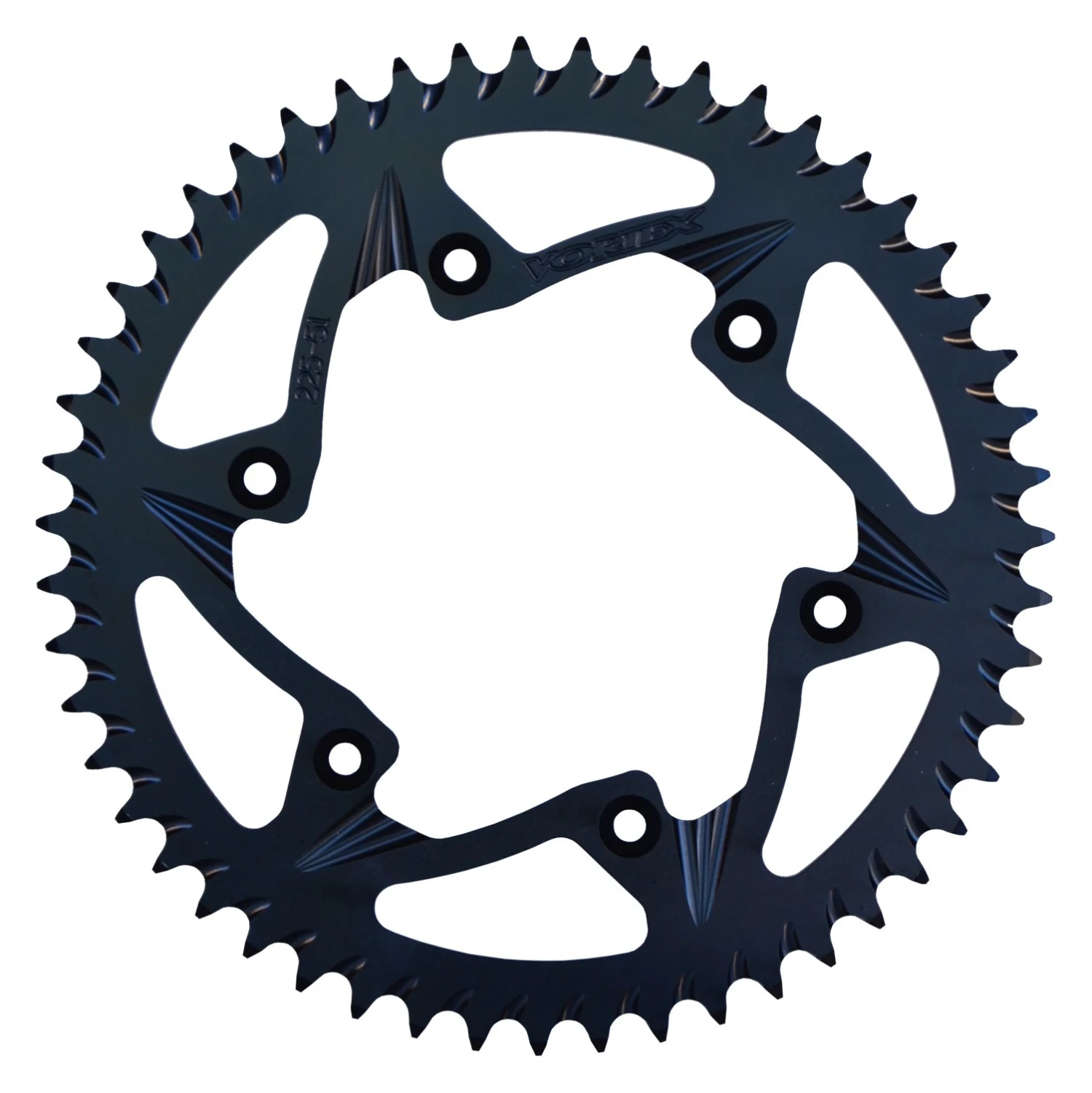 Vortex has stepped into the dark side and from it, they have created the Vortex F5 Aluminum Sprocket. The F5 Sprocket is coated in an extremely durable PTFE hard-coat. This hard-coat not only looks spectacular but it also reduces wear and makes cleaning a breeze. The F5 Sprocket’s aluminum construction makes it much lighter compared to an OEM steel sprocket and this leads to reduced rotating mass and allows for improved acceleration and handling.